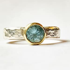 Zilveren/ gouden ring met aquamarijn Geplaatst op 12 april 2019 door Iris Hasewinkel Monique Tjon maakte dus prachtige ring tijdens de wekelijkse edelsmeedcursus.