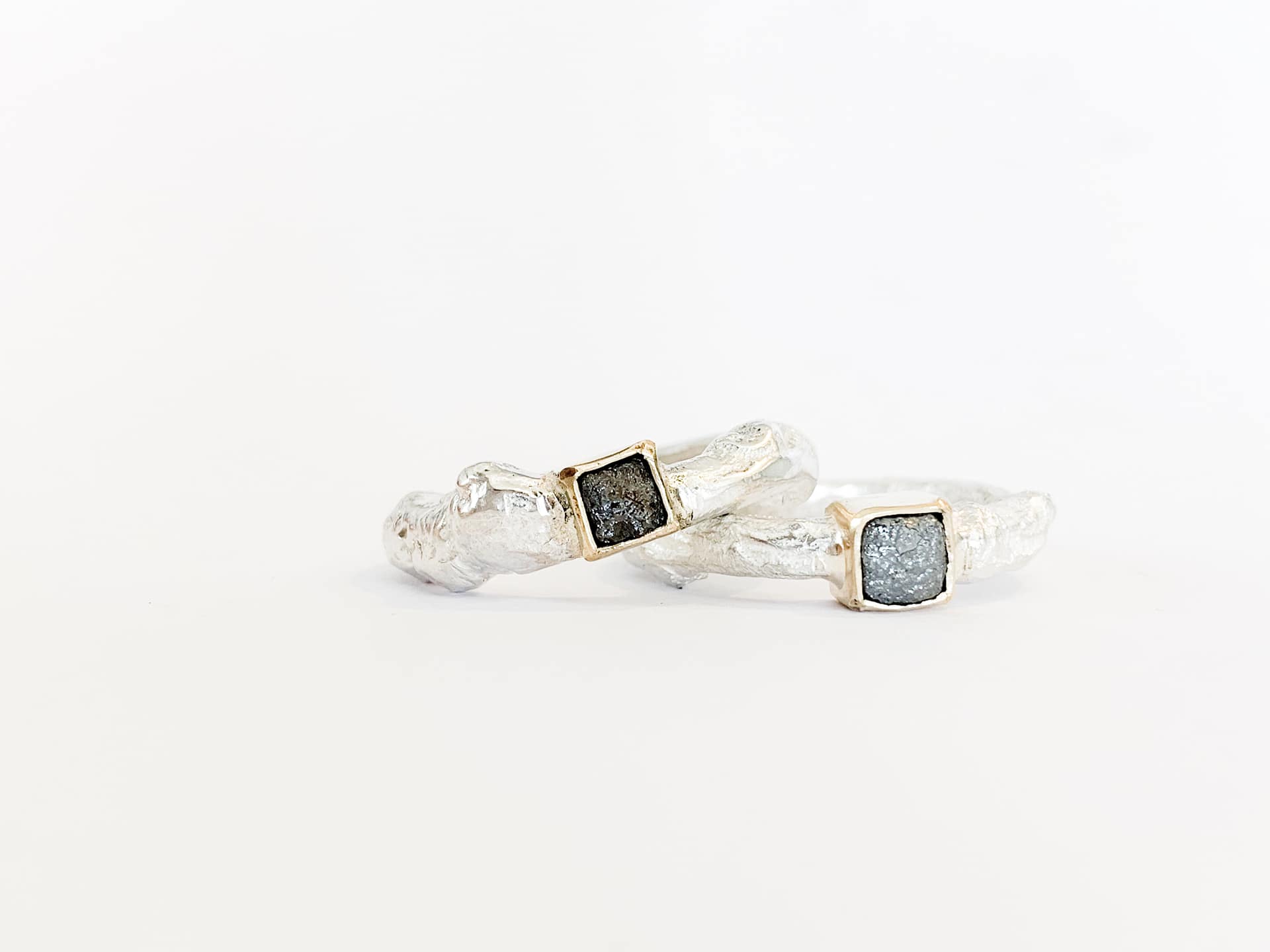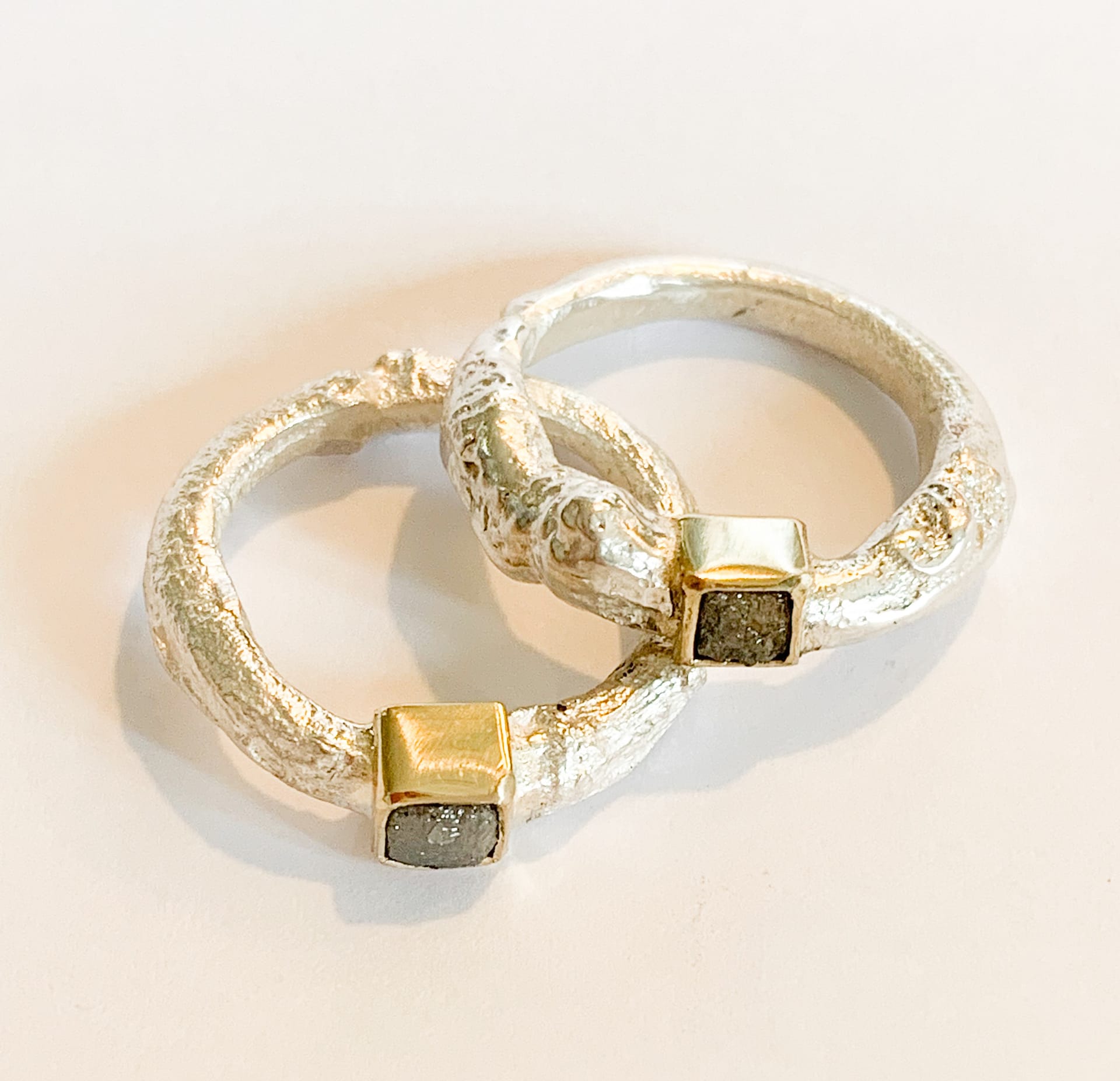 Zilveren ring met in geel goud gezette ruwe diamant Geplaatst op 16 mei 201916 mei 2019 door Iris Hasewinkel Deze prachtige ringen zijn door cursiste Cora gemaakt.